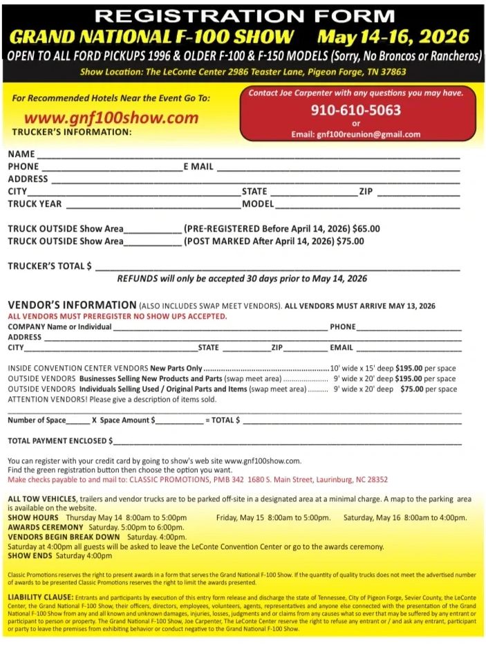 EACH TRUCK REGISTRATION INCLUDES 2 TRUCK SHOW PASSES FOR ALL 3 DAYS